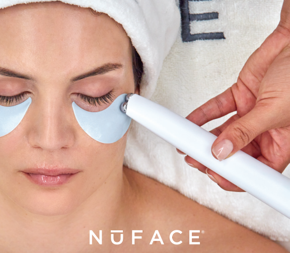 NuFACE Supercharged and Power Sculpted Eye treatment featuring the FIX MicroWand and Hydra-Gel IonPlex® Power Patches is the perfect add on to any facial treatment